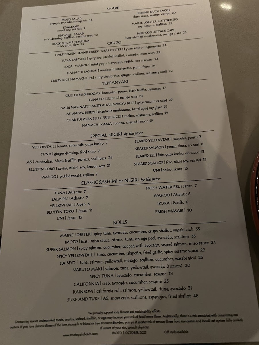 If you're craving a mix of classic flavors and creative twists, Imoto At Buccan Menu is the place to be. Nestled in the heart of Palm Beach, at 350 S County Rd, this menu brings together the freshest ingredients in a way that makes every dish feel like a celebration. Whether you're in the mood for sushi, inventive small plates, or something hearty, Imoto offers a variety of options that promise to satisfy every taste. The menu is a fusion of bold flavors and elegant presentations, with dishes that combine both Japanese and Peruvian influences. Each bite is an experience, showcasing the chef’s commitment to quality and innovation. From flavorful ceviches to tender grilled meats and irresistible sides, there’s something here for everyone.